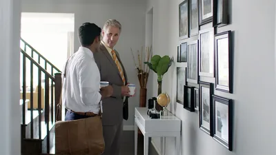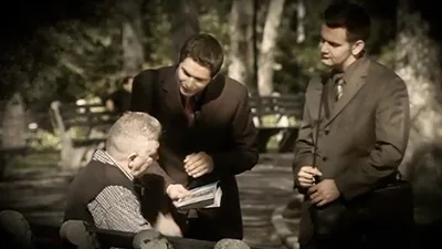 A scene from the video ‘Get Out of Babylon the Great!’ A Bible student walks away from a priest after she quit her job at a church.