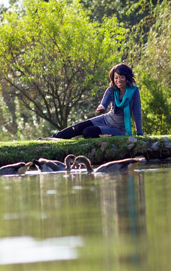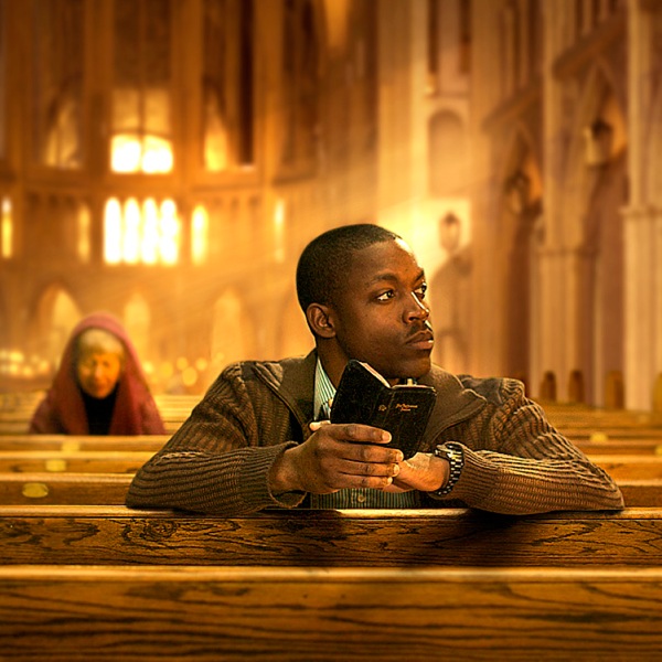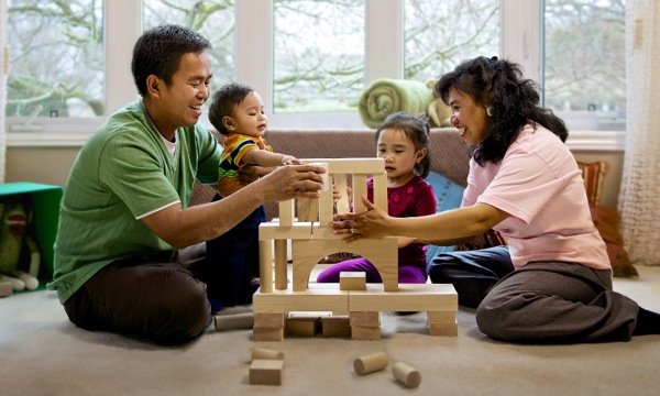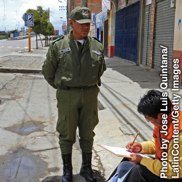 Two of Jehovah’s Witnesses use a mobile display cart in the public ministry
