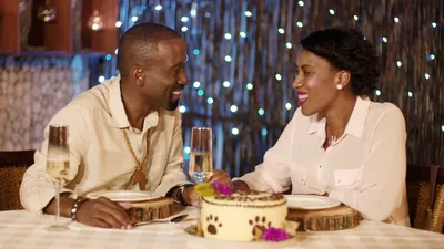 A. A husband and wife talking while having coffee together.