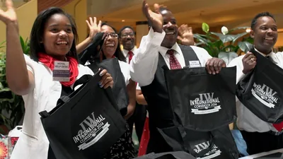 A scene from the video ‘Caring for Our Places of Worship.’ Men, women, and children clean the inside of their Kingdom Hall.