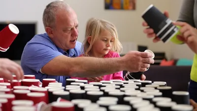 Collage: Scenes from the video ‘I Got Fed Up With My Lifestyle.’ 1. Dmitry looks at a bottle of alcohol. 2. Dmitry, his wife, and their daughter study the Bible together.
