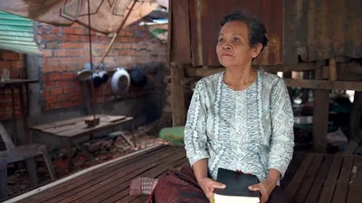 Collage: Scenes from the video ‘My Search for the True God.’ 1. Soten sits under a tree in the forest, looks up at the sky, and prays to the true God. 2. Herold teaches Soten that God’s name is Jehovah.