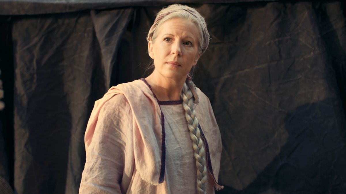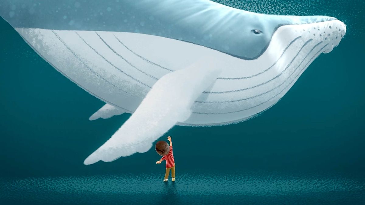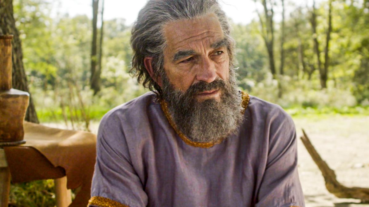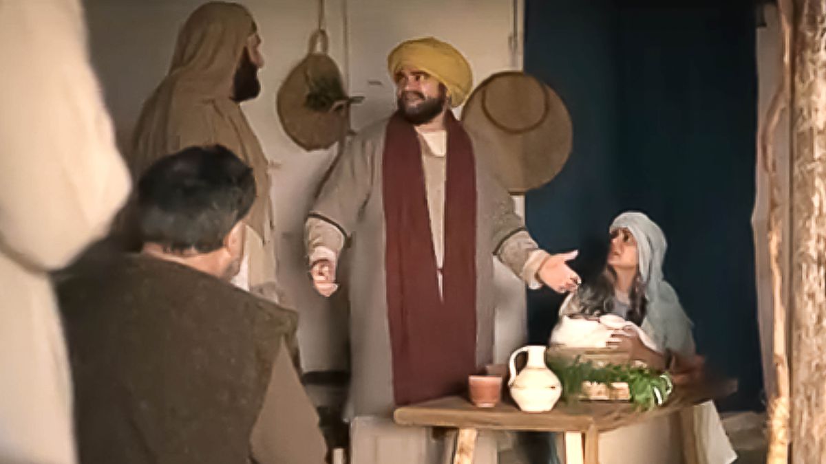 Moses lifting up his rod while Jehovah splits the Red Sea into two high walls of water.