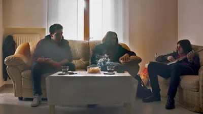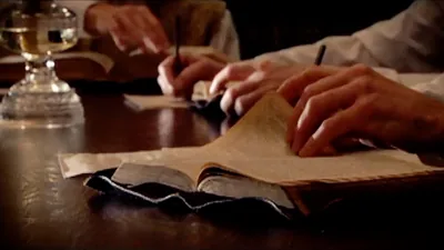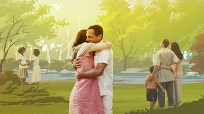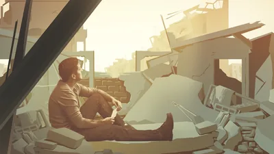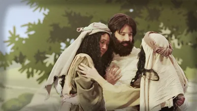 A. Collage: 1. Adam after he disobeyed God. 2. A casket being carried in a funeral procession.