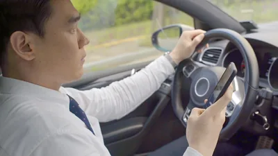 A car driving along the edge of a mountain road. The back of the car has started to veer off the edge.